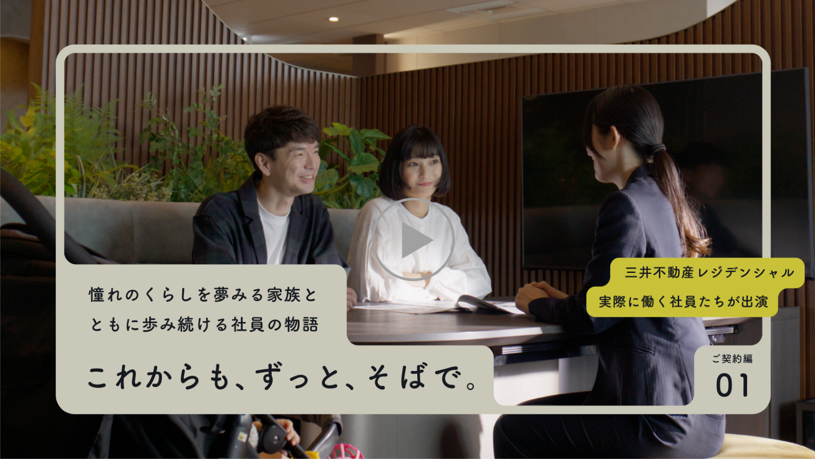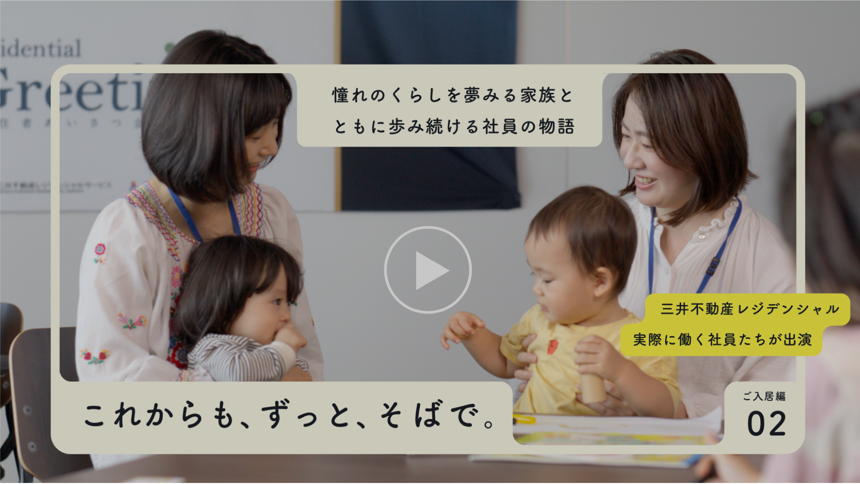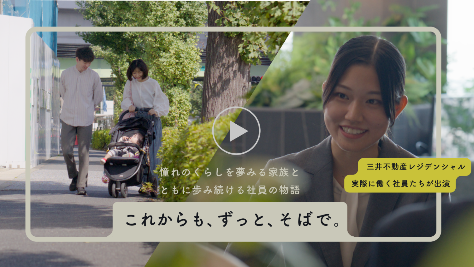 三井不動産レジデンシャルは、お客様との出会いからご入居後のくらしまで、いつも寄り添い続けます。いつまでも安心できるくらしをともに描くこと。そして、お客様満足度No.1を目指すこと。この動画はそんな私たちの想いをカタチにしたものです。