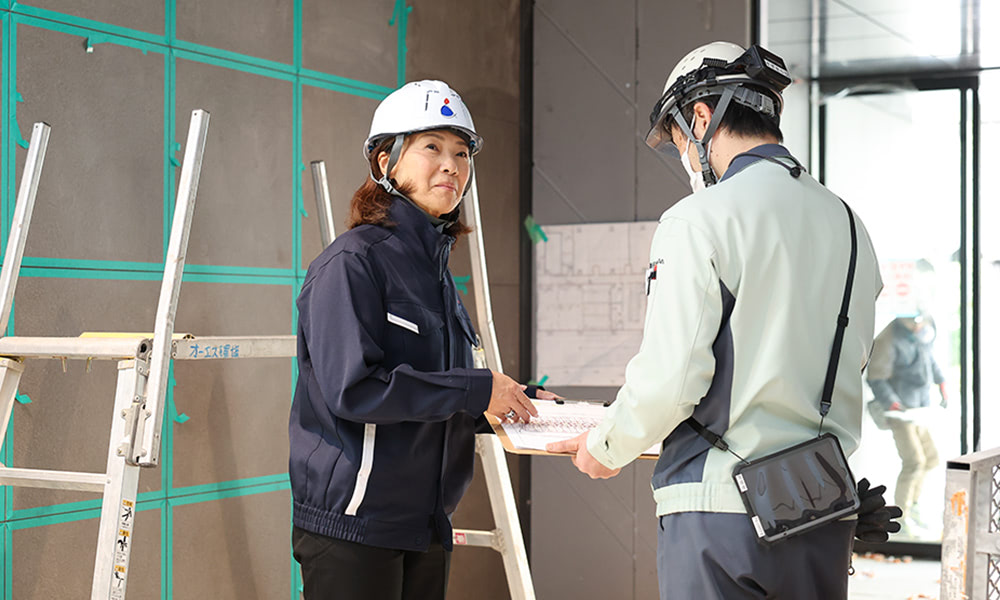 品質を守る仕事は、決められた作業と手順を見落とさなければ進められる仕事です。だからこそ、物件にどれだけの想いをぶつけるかは自分次第。私はいろいろな場面で、あれこれ口を出すので、「おせっかい」と思われているかもしれません。ですが、その「おせっかい」こそが、関係者の垣根を取り払い、プロジェクトを円滑に進める潤滑油になると信じています。「山川さんが言うならやろう」と現場の方に言っていただける信頼関係を築くこと。それが結果として、お客様に感動していただける品質につながると思っています。これからも品質管理という仕事に携わり、関わる人たちの想いをつなぐことで、自信をもってお客様に引き渡せるすまいをつくっていきたいと考えています。